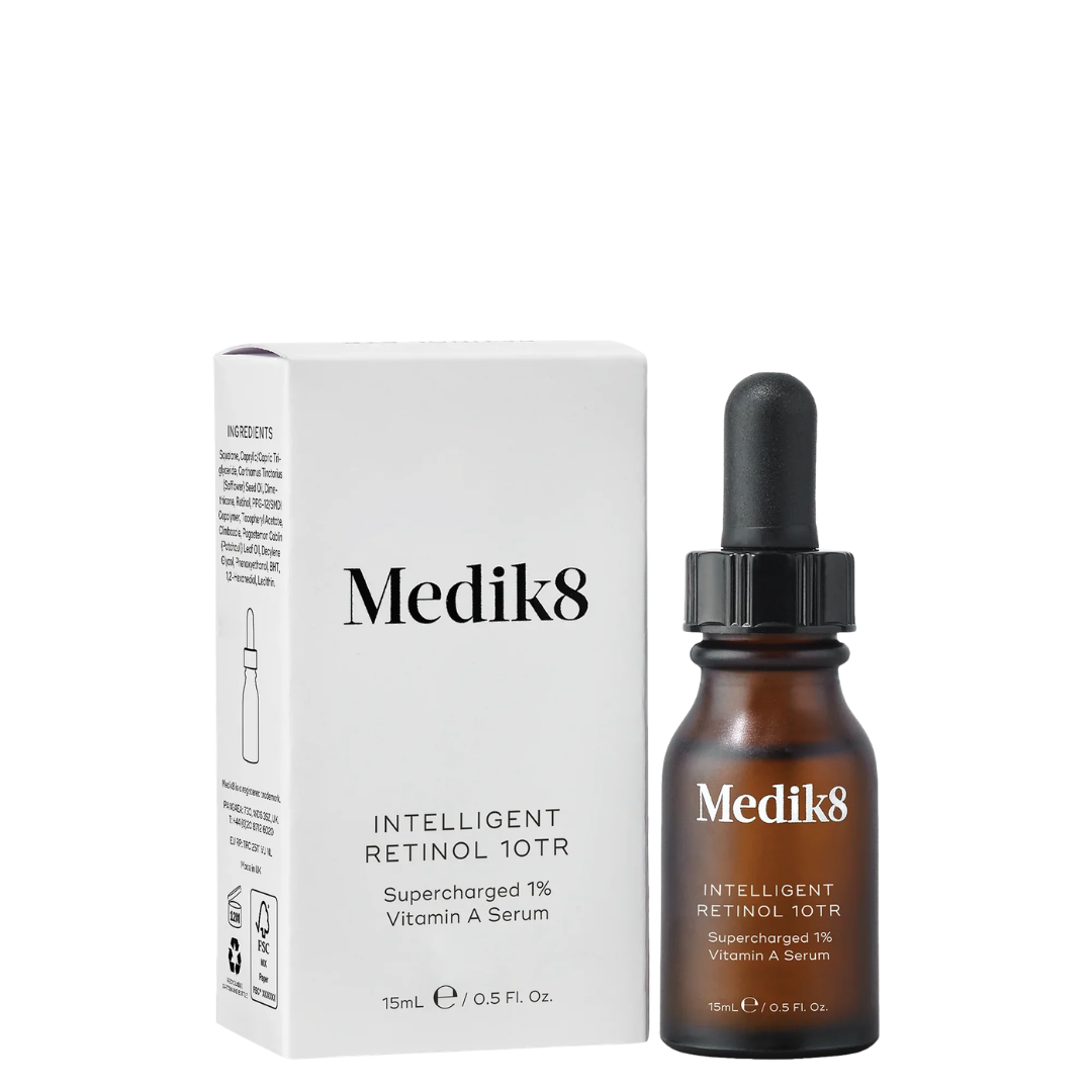 Medik8 Intelligent Retinol 10TR Serum 15ml is a lightweight vitamin A night serum that refines skin tone and texture to help visibly diminish the appearance of fine lines and wrinkles while you sleep.